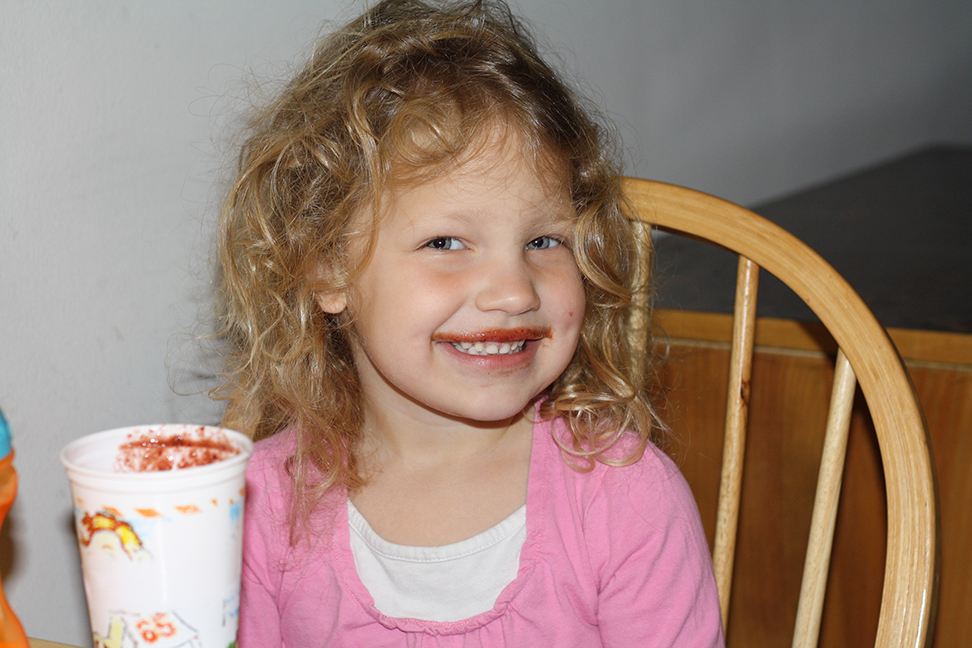 Here are a few cute pictures from April Fool's Day. Busy as we were, our practical jokes amounted to a silly breakfast for the kids: jello instead of a drink and colored milk with cold cereal. Nothing too special, but it gives us an excuse to share more pictures of the kids!